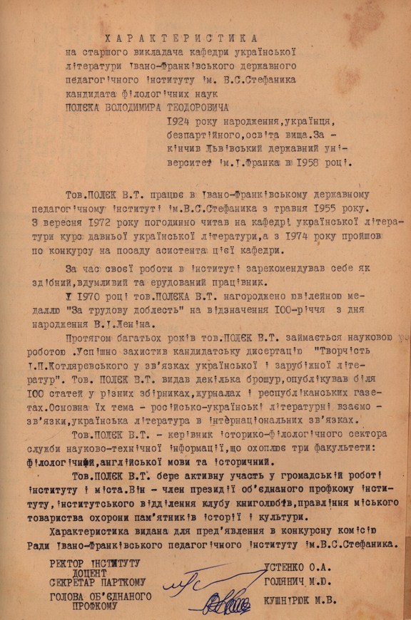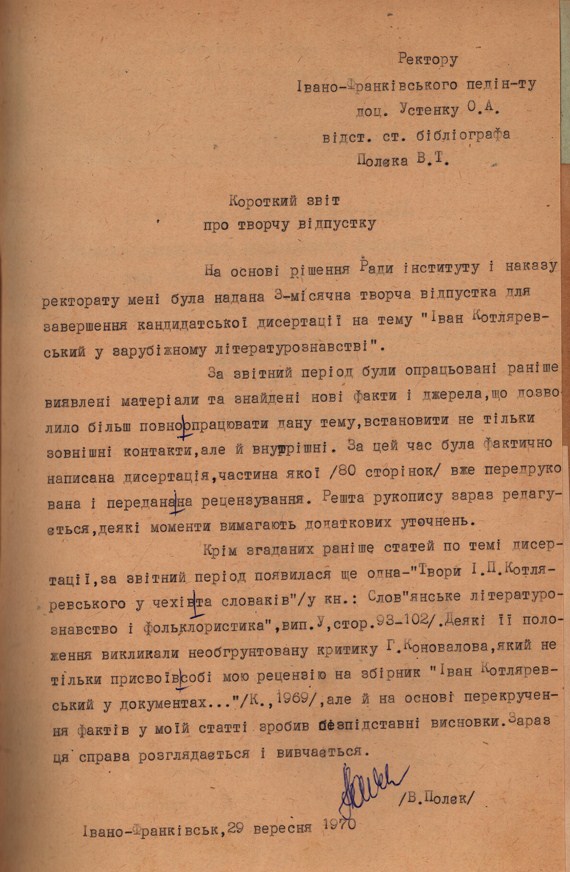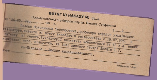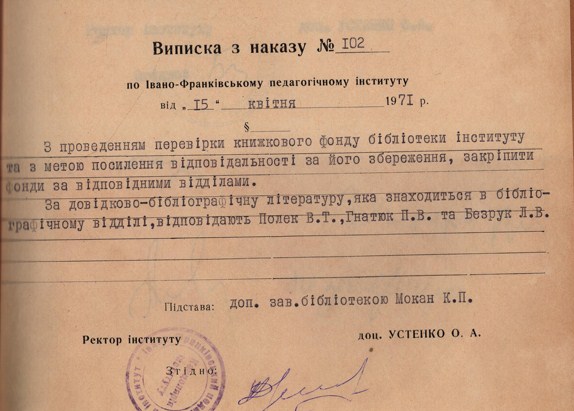 ІМЕННИЙ ФОНД ПРОФЕСОРА В. Т. ПОЛЄКА У НАУКОВІЙ БІБЛІОТЕЦІ ПРИКАРПАТСЬКОГО НАЦІОНАЛЬНОГО УНІВЕРСИТЕТУ ІМЕНІ ВАСИЛЯ СТЕФАНИКА