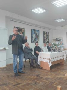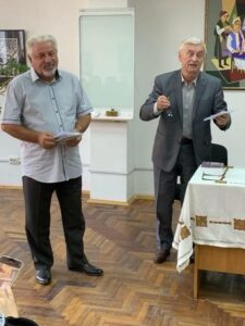 Голова Івано-Франківської обласної організації Михайло КОСИЛО розповів про проведення ювілейної зустрічі Лауреатів обласної премії імені В. Т. Полєка та вручив Ювілейні медалі імені Володимира Полєка: літературознавцеві Євгену БАРАНУ та працівникам наукової бібліотеки Надії ГАЛЯРНИК, Олегу ГУЦУЛЯКУ та Роману ДЗУМЕДЗЕЮ.