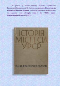 Професор долучився до створення сімнадцятитомного видання УРЕ, до видання одного з томів “Історія міст і сіл УРЕ. Івано-Франківська область” (1971), за що отримав “Подяку” за підписом М. Бажана.