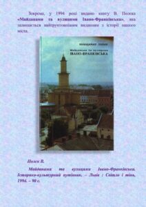 Історико-культурний путівник “Майданами та вулицями Івано-Франківська” (1994) – найбільш повно розкрита історія міста, котрою послуговуються і в наш час.