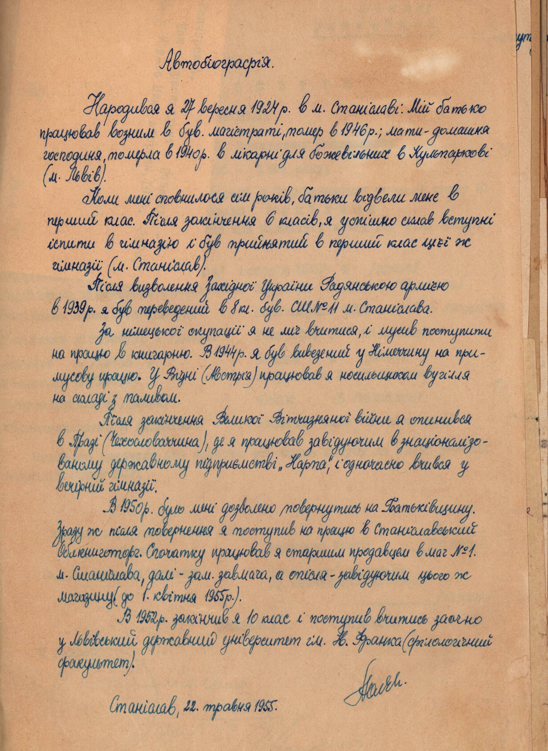 Вивезений на роботи (на складах вугілля) в Австрію (Відень, 1944-1946). У 1946-1950 рр. працював завідуючим націоналізованого готельного підприємства “Нарпа”, заочно вчився у вечірній гімназії, а потім – в університеті у Празі.