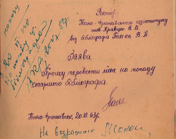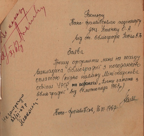 У 1955-1963-рр. – бібліограф, у 1963-1974 рр. – старший бібліограф, у 1974 р. – завідувач бібліотеки Івано-Франківського державного педагогічного інституту імені Василя Стефаника (тепер – Прикарпатський національний університет імені Василя Стефаника). Одночасно у 1967-1968 рр. – викладач бібліографії, у 1972-1974 рр. – викладач кафедри української літератури.