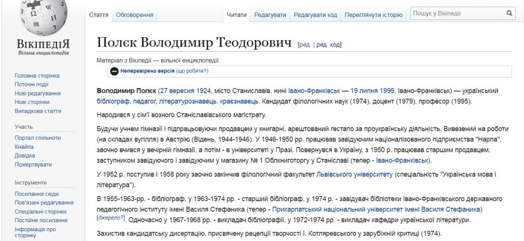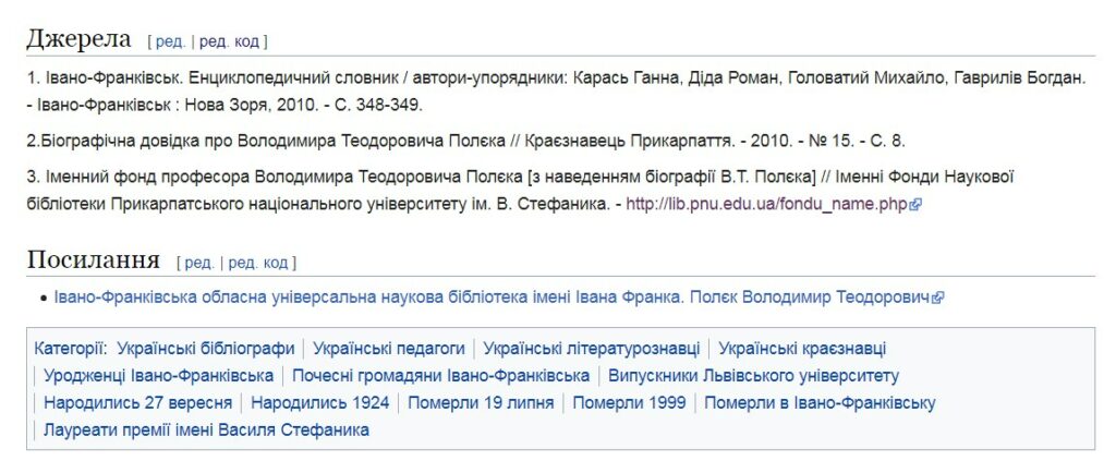 - 4. Стаття у Вікіпедії: https://uk.wikipedia.org/wiki/Полєк_Володимир_Теодорович
